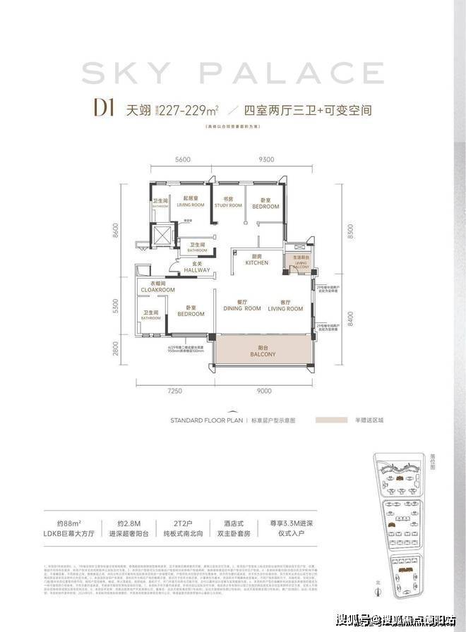 D1 – 天翊(建面约227-229㎡ 四室两厅三卫+可变空间)