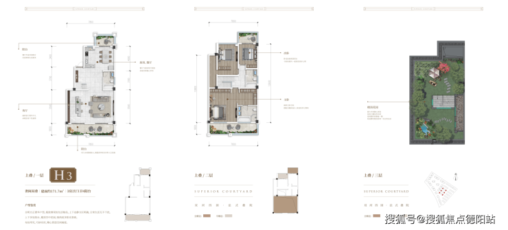 上叠建筑面积约212户型,星空大露台,上中下三层,空间灵活,私密主卧独享花园