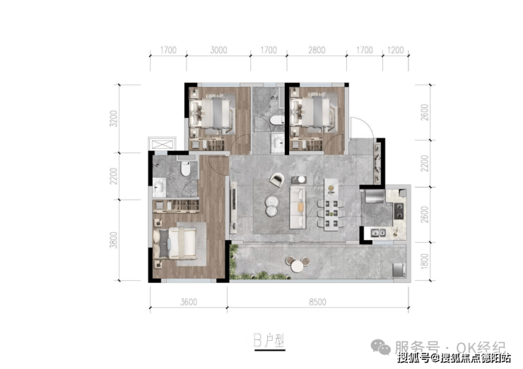 ·80平套三单卫 4.5米阔景阳台