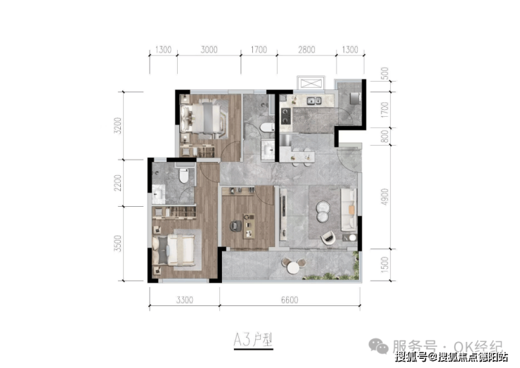 ·94平套三双卫 6.6米阳台