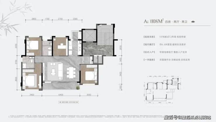 设计亮点:全明空间,6.4米横厅+双面宽阳台,主卧套房设计,独立玄关收纳。