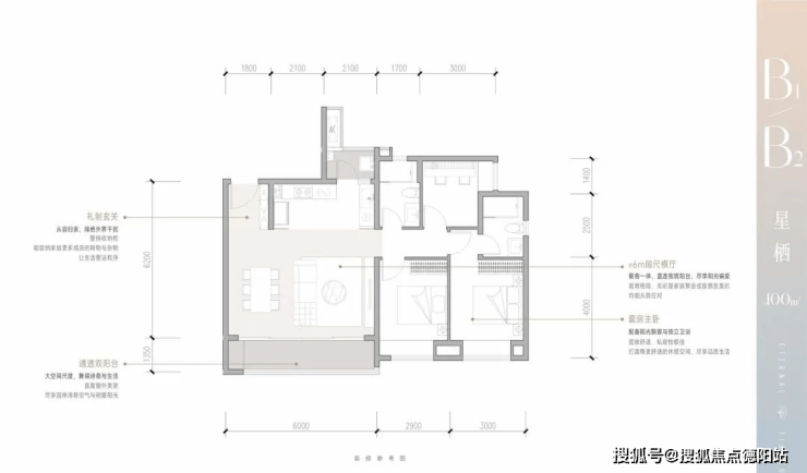 B2户型 建面约100㎡三室两厅两卫