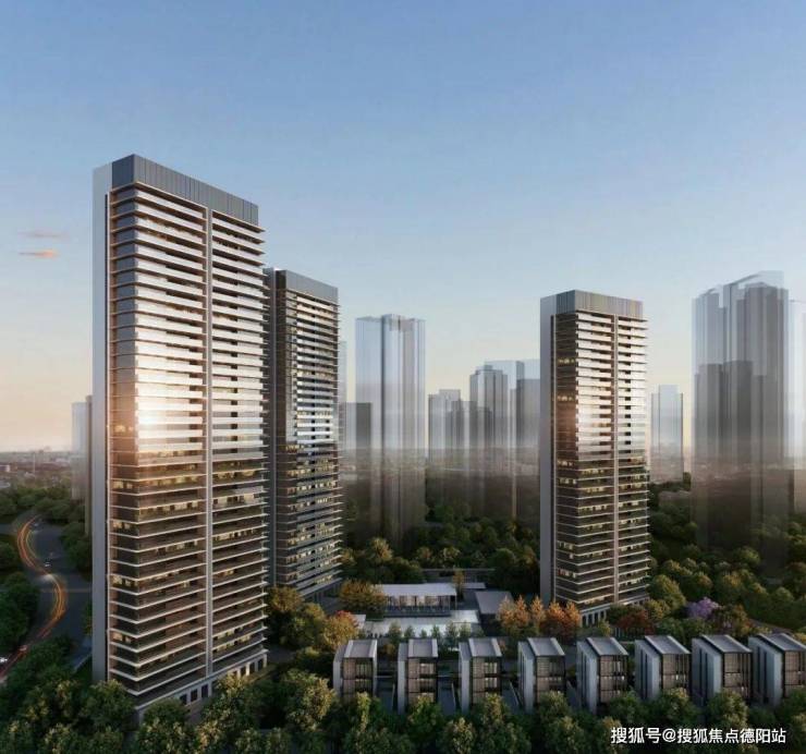 项目依然由四栋33-38F的超高层住宅、8栋类独栋、1栋3F商业和中庭会所组成,其中超高层建筑高度在120-140米左右,地标感很强。