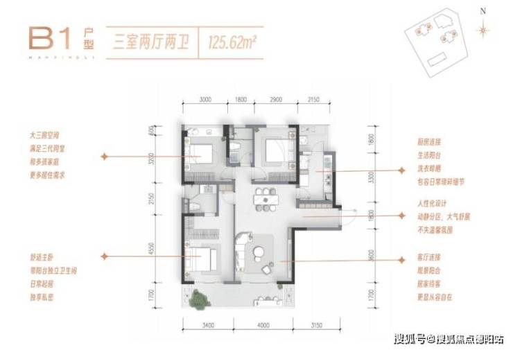 【产品面积】主力建面约118㎡/125㎡三室两厅两卫、160㎡四室两厅两卫