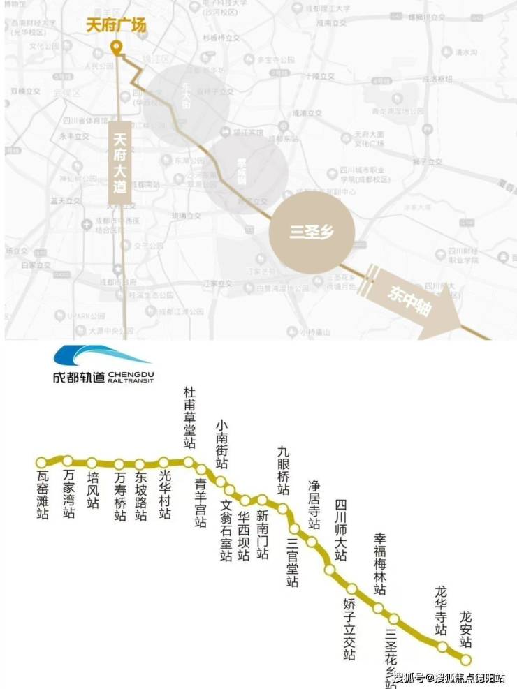 距金融城约6.5公里,距春熙路约8.5公里,与金融城,太古里-东大街构成「黄金三角区」;承接锦江向南,金融城向东发展的双向奔赴,高能产业聚集、繁华城市基底、低密留白规划、不可复刻生态,高净值人群聚落,让三圣乡成为全城仰望的奢宅新封面。