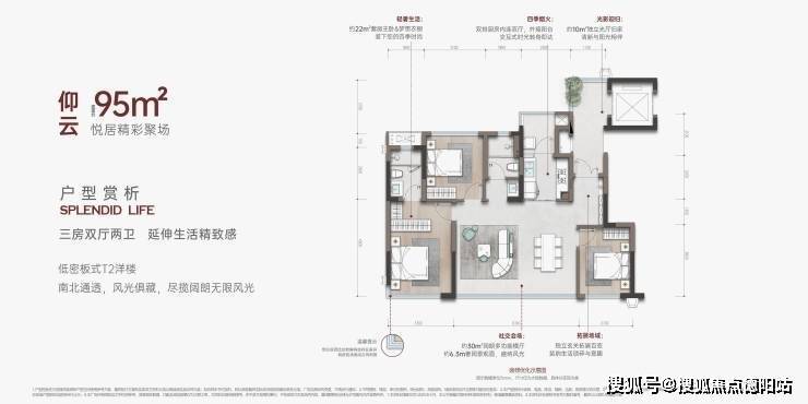 旗舰户型:南北双套房设计,7.2米横厅+双阳台;独立玄关收纳系统,对标主城140㎡产品力;