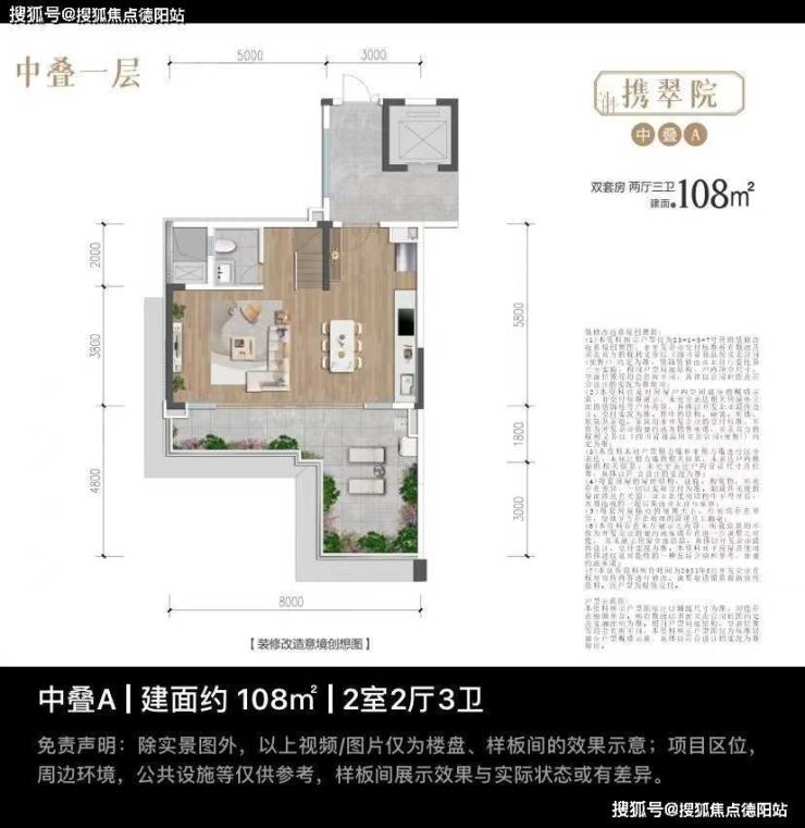 中叠108平,带30平左右露台