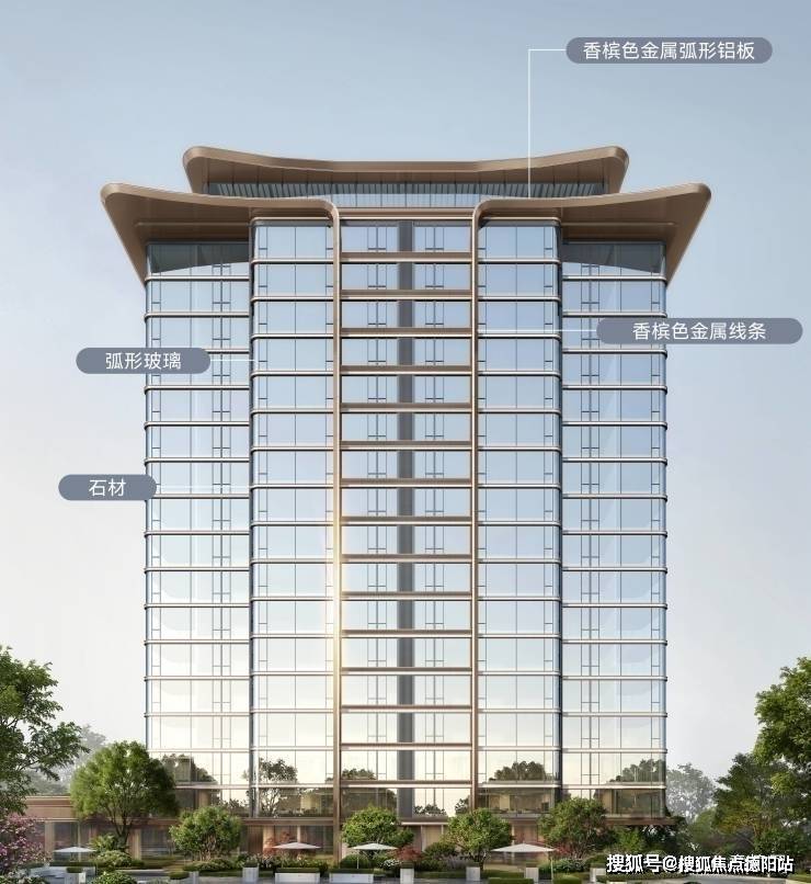 大面积玻璃覆盖+石材到顶+金属铝板,约66%超大窗墙比,越级对标成都尖端豪宅立面配置