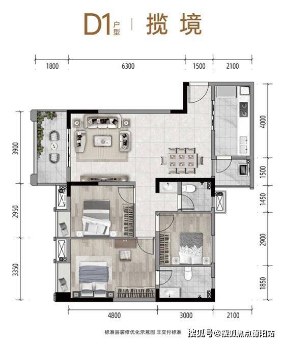 建面信息:建面约86 / 91 /116㎡ 套三双卫