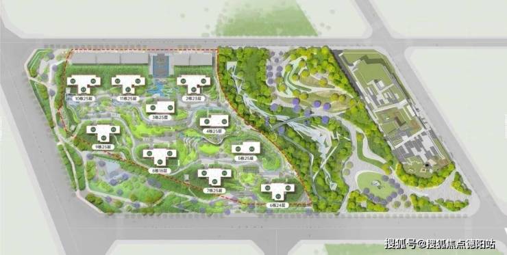 天樾境C区的内部景观设计与外部公园形成了分级高差,巧妙利用地势高差,采用低围挡设计,让内部景观与公园边界自然融合。
