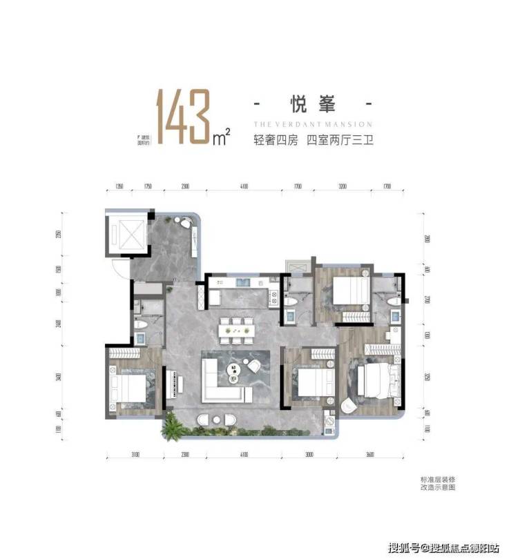 空间配置:143-185㎡阔绰户型,2梯2户花园入户