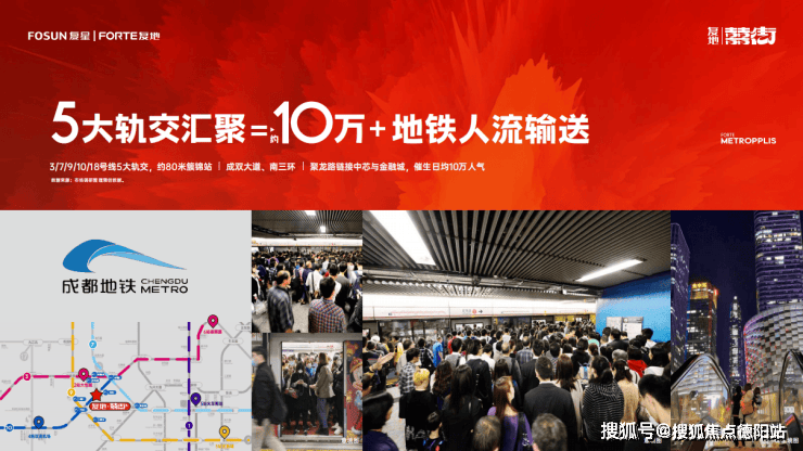 3/7/9/10/17号线5大轨交,约80米簇锦站,成双大道、南三环、聚龙路链接中芯与金融城,催生日均10万人气。