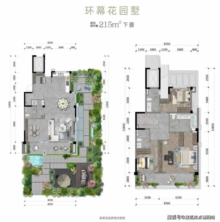 下叠被呈L型的花园环绕,中上叠客厅则可实现双面采光(部分房源),再匹配约8.35m的IMAX面宽,空间尺度感完全不输大平层!