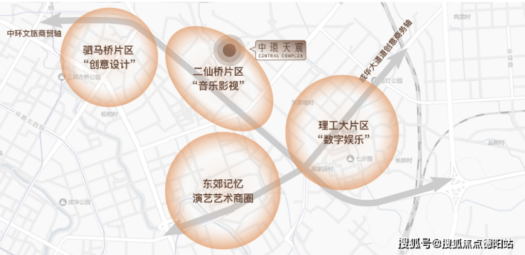 根据2017年提出的“中优”战略,成都规划有「两中七副」九大中心:主城三环内只有两个发展中心,一个是天府锦城中心、另外一个就是项目所处的八里庄副中心。