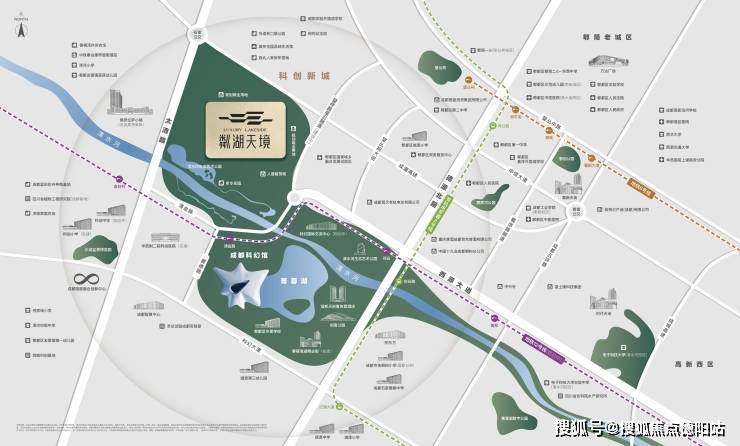 公园城市的理想生活蓝本,约1314亩世界科幻公园交汇约700亩清水河生态艺术公园,既有三千年的人文之水流淌,又有科技生活的未来体验,双重稀贵生态资源,赋能都会少见的湖岸宜居高地。