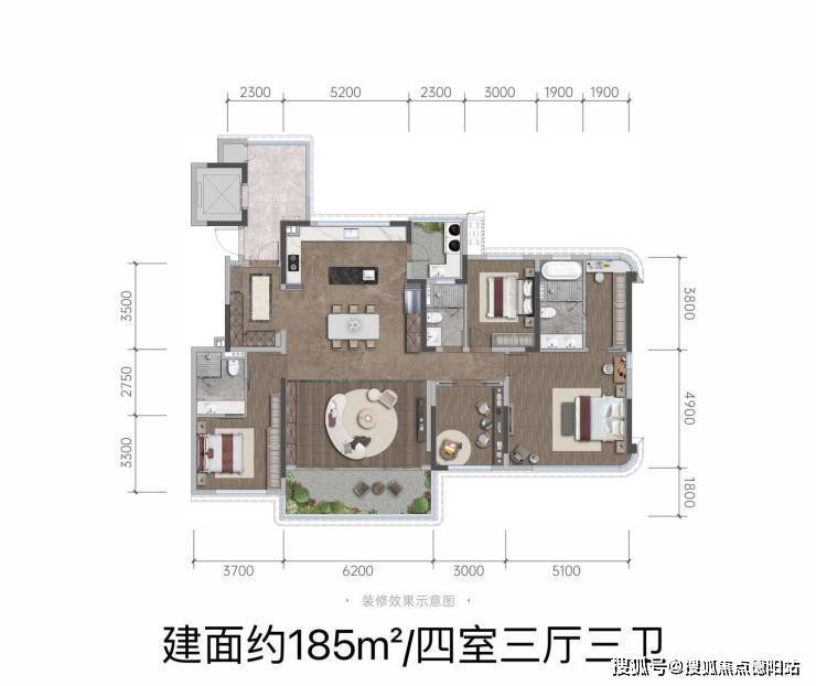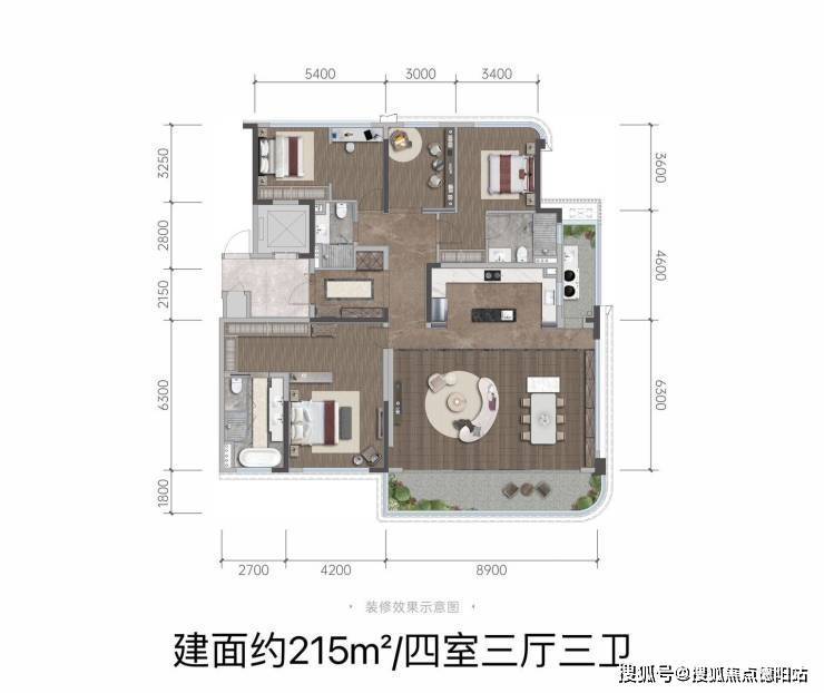 产品面积:建面约165㎡、185㎡、215㎡(得房率:约95-98%)