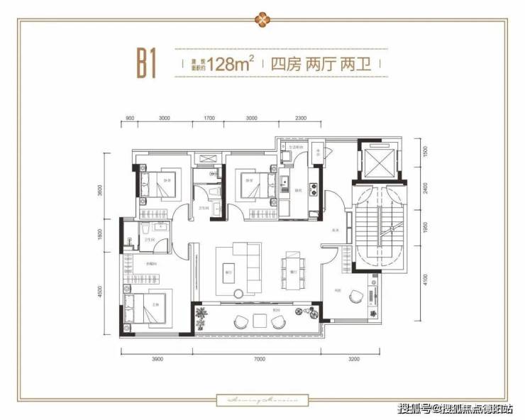 B1户型 约128㎡ 四室两厅双卫双阳台