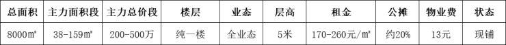 外街租金260元/㎡,内街170元/㎡,部分特殊铺型更高!