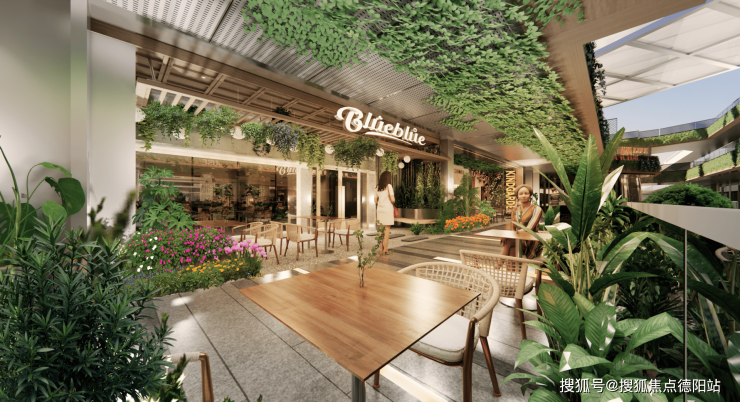 真金白银打造,花3000万改造项目,打造森系网红商业街区; 园林式外摆,结合光影和生态美学打造绿意就餐氛围感;