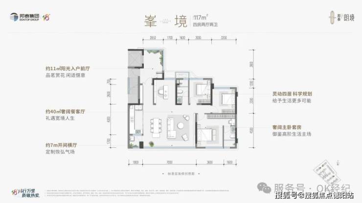 •建面约117㎡ 峯境 四室两厅双卫(清水)阳光前厅私梯入户,灵动四居,奢阔主卧套房