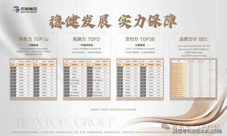 2024年邦泰以全年118亿拿地22宗,位列中国指数研究院全国拿地建面榜第14名、金额榜第17名。2025年1-4月拿地面积全国TOP2,拿地金额全国TOP13(数据来源:中指研究院)。