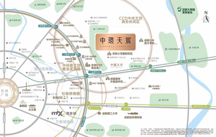 根据2017年提出的“中优”战略,成都规划有「两中七副」九大中心:主城三环内只有两个发展中心,一个是天府锦城中心、另外一个就是项目所处的八里庄副中心。