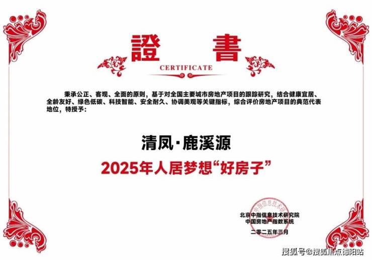 【清凤·鹿溪源 “好房子”证书 实拍图】