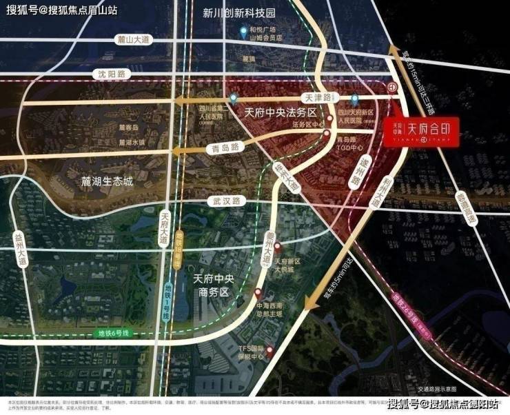 天投中海·天府合印,位于天府新区核芯天府前湾板块,紧邻现行天府商务区,且北接麓山、西连麓湖等高端板块,地理优势得天独厚。