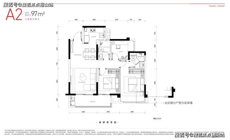 天府合印一批次只会推出9栋共计108套房源,因此它这次也只有两个户型可供选择,分别是97平三房两厅双卫和113平米三房两厅双卫。