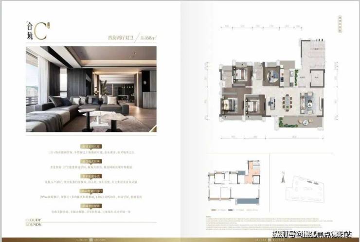 168㎡四居 9.45米IMAX级景观面 南北通透格局 全景露台设计 可变五房空间