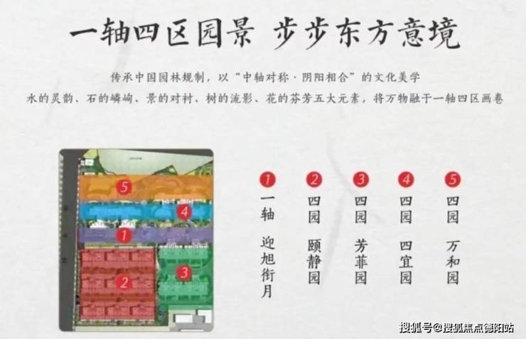 “锦御东府”传承中国传统园林的严肃规则,以“中轴对称 - 阴阳相合”的文化美学,打造“一轴四园、五重归家礼序”的风韵空间,步步东方意境。