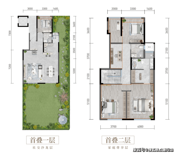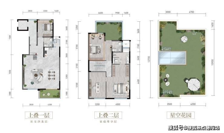4、首层面积116㎡,二楼起居室112㎡,星空花园90㎡