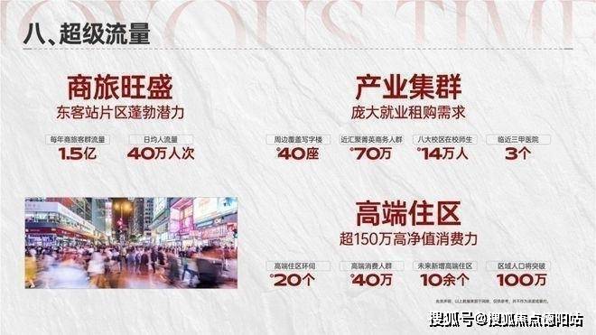 3、强需求:1.5亿东客站商旅人群、70万产业商务人群、10万+高校师生、超110万常驻高端消费人群,具有超强居住需求及消费需求。