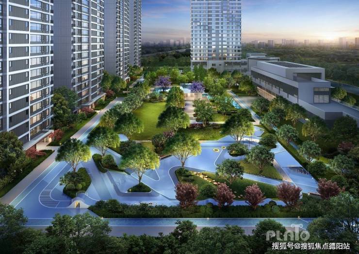 项目园林规划“一轴两园八景八境”,约170mX70m敞阔空间,相当于8个标准足球场大小,运动、社交、娱乐、景观……,生态围合,移步异景,诗意雅居。