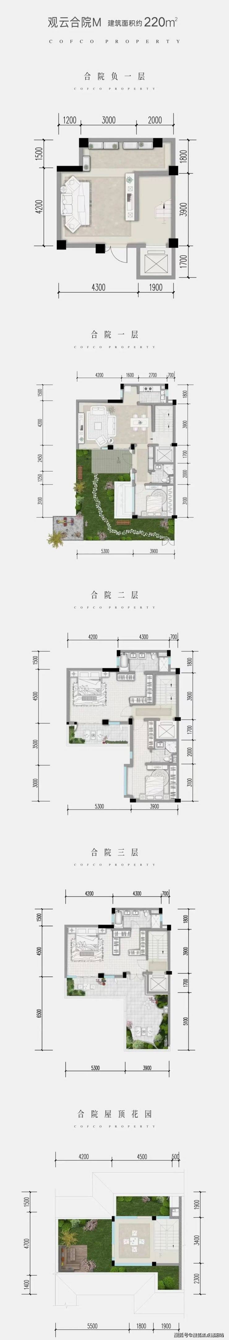· 合院:220-250㎡(总价1200-2000万),附赠40-260㎡私家庭院,260㎡样板间总价1518万起