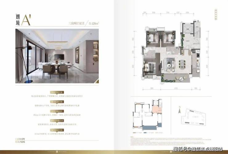 128㎡三居 南北通透格局 独立玄关系统 LDK一体化餐客厨设计 多功能双阳台配置