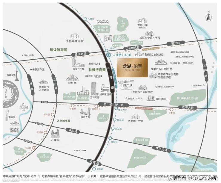 龙湖泊萃位于成都市成华区嘉祥外国语学校南侧,距离地铁二仙桥站仅约500米。