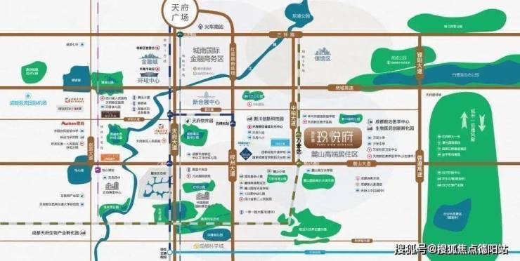 生态环境|项目周边拥有优质的生态资源(新川之心、新川湿地、麓山高尔夫俱乐部、万安体育公园等),向南是天府中央公园,总占地3750亩,跨天府大道中轴线的城市公园;向东建设中的鹿溪源郊野公园、白沙湖公园,占地约3000亩。真正实现城市空间与生态绿色的相互融合,让居住在这里居民走出社区就可以“进林亲水”,营造一个“无处不公园”的诗意环境(此处公园介绍来自天府新区官方网站,仅供参考)。