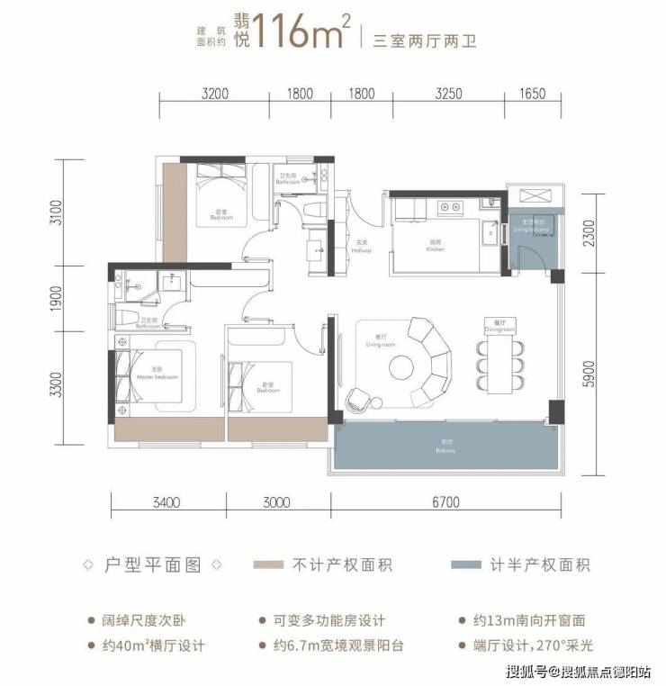 建面约116㎡ 三室两厅两卫