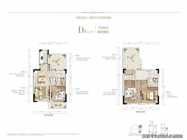 联排产品,实为一跃二跃三 ,“有天有地”,不仅享有前后双花园,同时还享有露台,此外端头位置三面花园实现180度观景,空中大露台设计,更有益于观景。