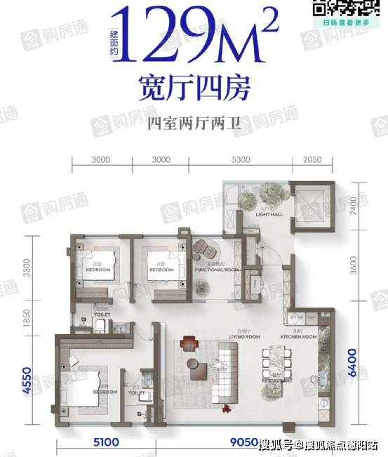 该项目为温江区首个新规楼盘,规划打造建面约129-199㎡全套四户型,户户得房率超过100%。