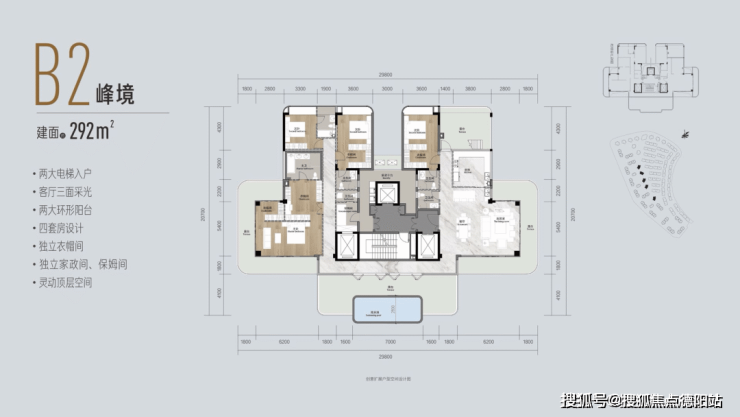 5、最强产品:约35m2U型环幕露台,270°广阔瞰景视野;约3.3-5.8米奢阔层高;3梯2户主人独梯,约2.2米超大电梯进深尺度,成都豪宅NO.1。