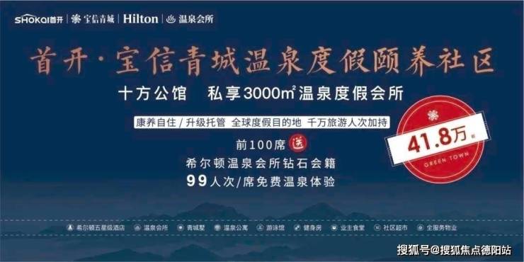 十方公馆,宝信青城Ⅱ期首推50平米小户型跃层温泉公馆,毗邻温泉会所及希尔顿五星级温泉酒店,温泉酒店托管助力房产增值,高端度假配套书写青城山度假新读本。