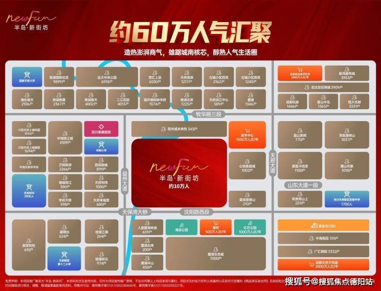 天府半岛总户数2.8万户,自带近10万人,人流动向环绕6期、7期,并且在售商业街区紧邻公园及学校,引导消费人流动线,将内部需求直接转化为高热度、高质量的持续性消费。
