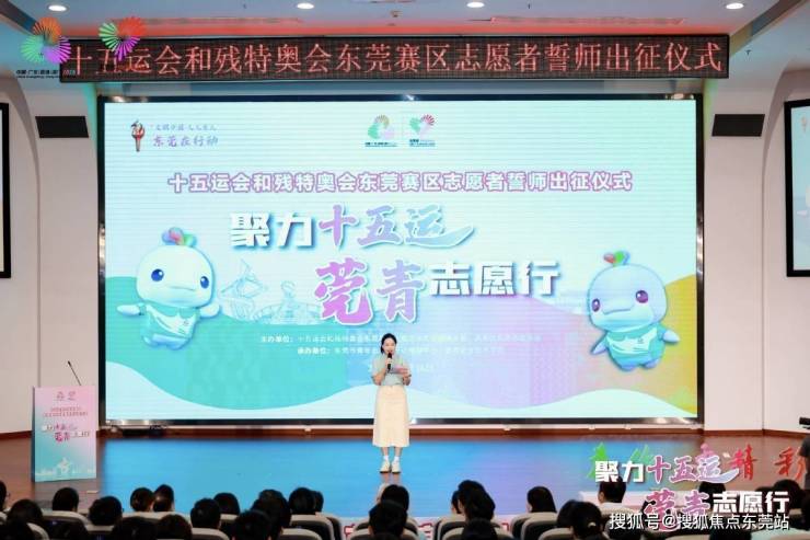 为迎接第十五届全国运动会和全国第十二届残疾人运动会暨第九届特殊奥林匹克运动会(以下简称“十五运会和残特奥会”),全面展示东莞志愿者良好的精神风貌,10月26日,十五运会和残特奥会东莞赛区志愿者誓师出征仪式在东莞职业技术学院举行。