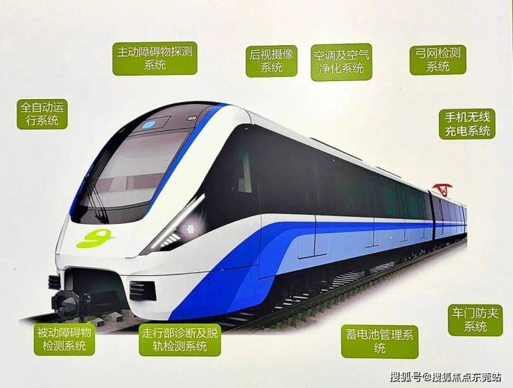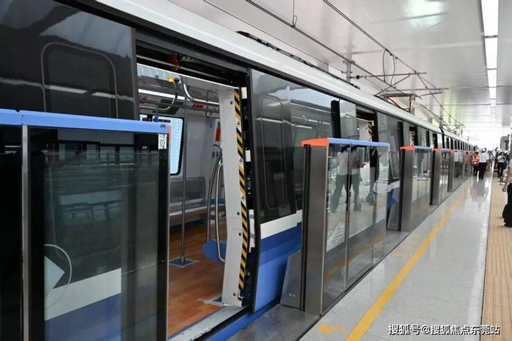 东莞轨道交通1号线一期工程车辆是以全自动驾驶最高等级——GoA4级研发的B型车辆,列车采用4动2拖6辆编组,最高运行时速120公里,全列车最大载客量2000余人。