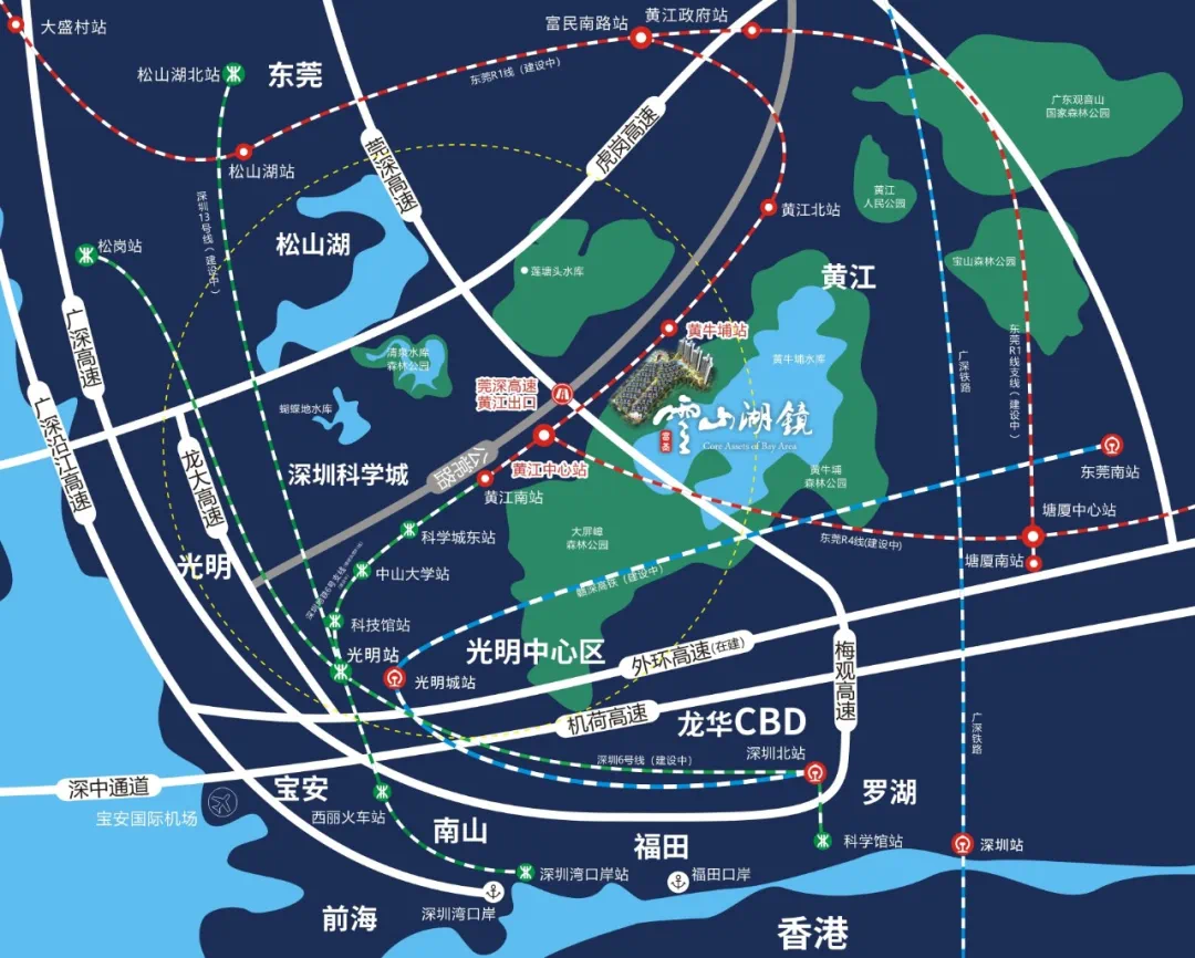 更让人惊喜的是,它距离黄牛埔站仅需步行10分钟,同时拥有梅观/莞深高速(约500米抵达莞深高速黄江/公明出口)、虎岗高速、龙大高速、从莞深高速、深圳外环高速等六大高速,成就30分钟“南山福田中心”、15分钟“光明新城”多元乐活生活圈!