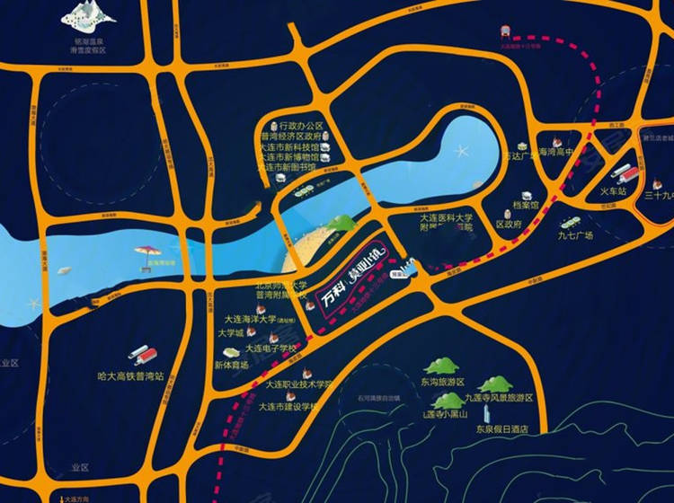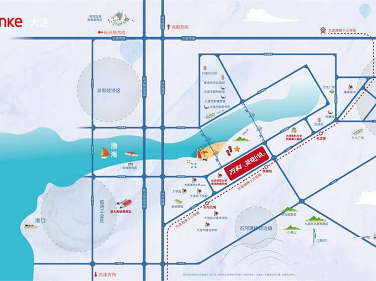 教育设施:万科莫亚国际营地、苗之硕教育、幼儿教育实验园、北京师范大学大连普湾附属学校、北师大幼儿园