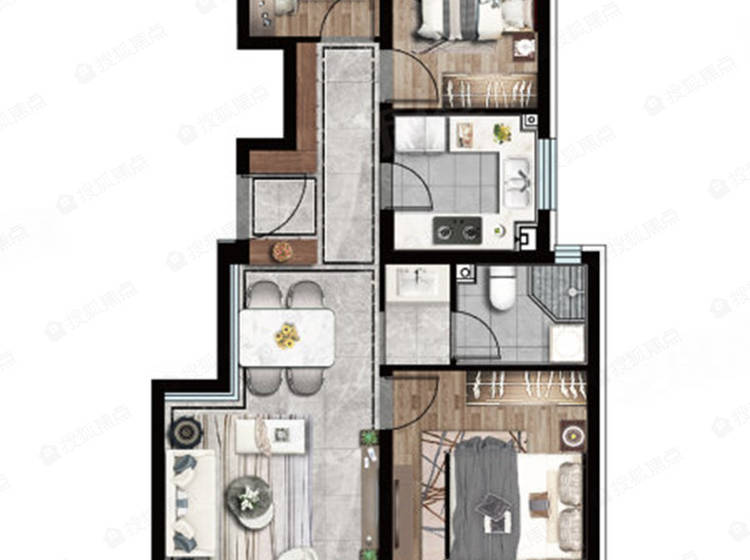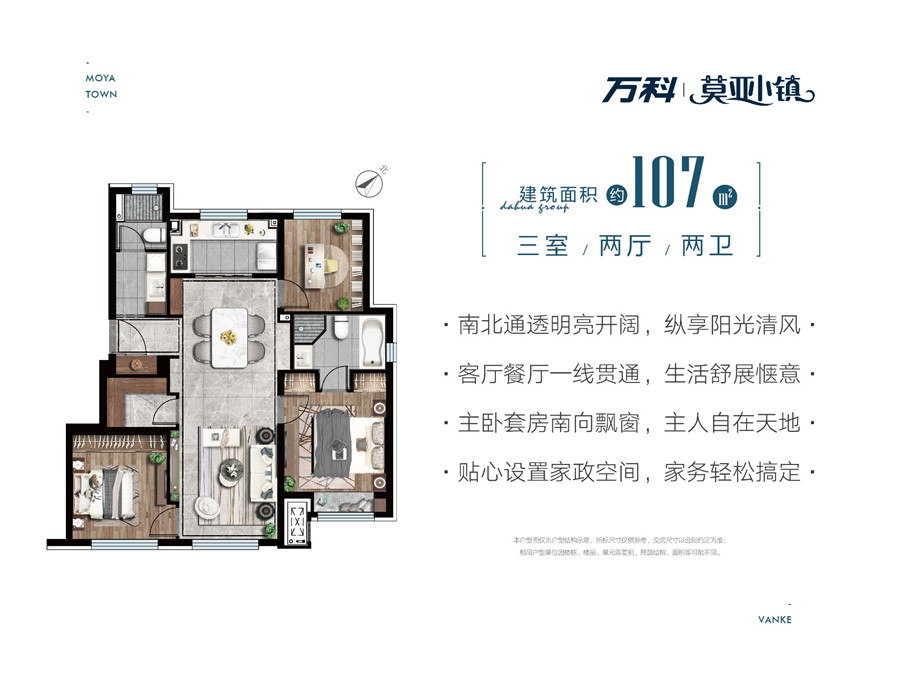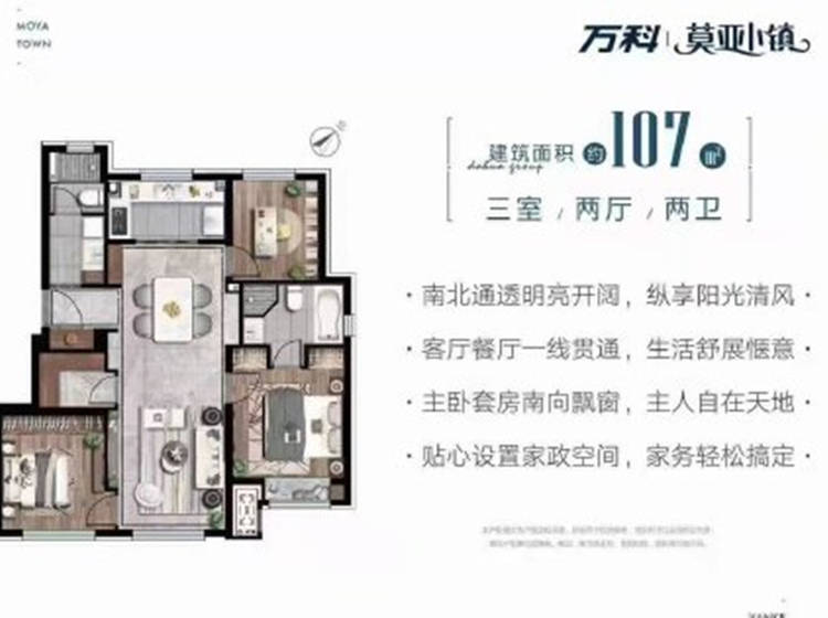 3室2厅2卫-3室2厅1卫1厨,107平米