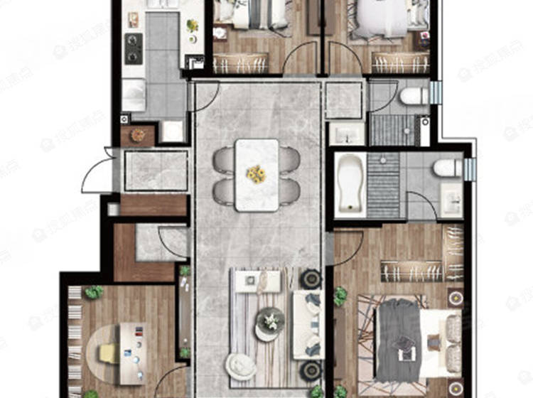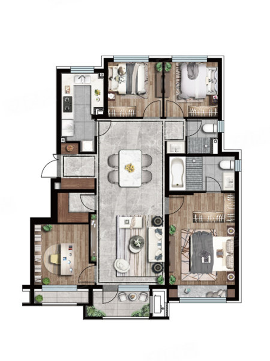4室2厅2卫-4室2厅2卫1厨,125平米